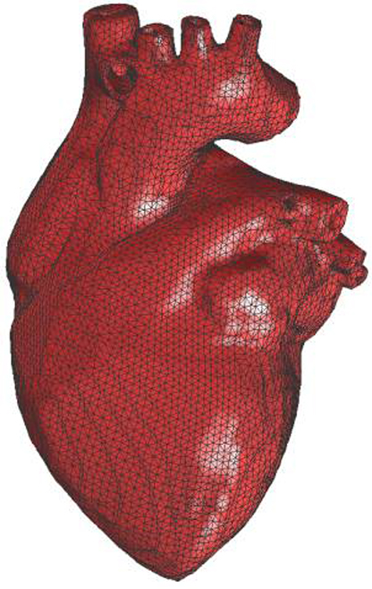 A simple triangular surface mesh of the heart is converted