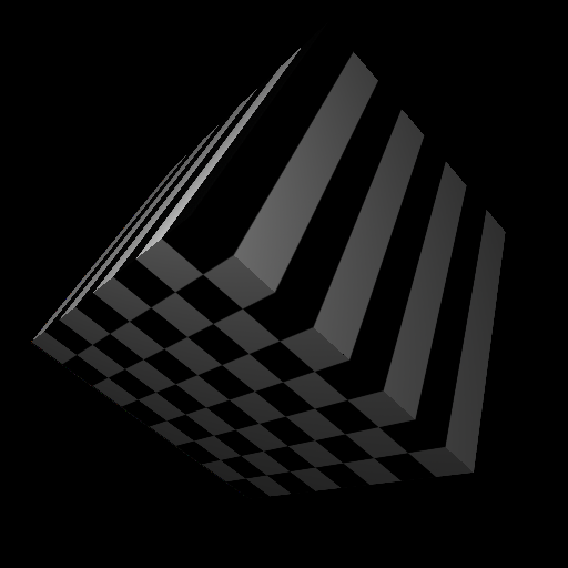 Illustration of our 3D texture mapping. Here we toss out the third parameter coordinate. This creates a solid texture by stacking the 2D checkerboard in the cube's bounding box space.