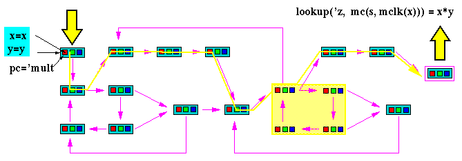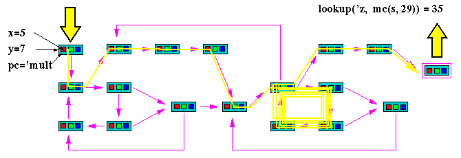 Suppose the machine being modeled is some kind of arithmetic unit. Suppose the model can be initialized so as to multiply x times y and leave the answer in z. Then if we initialize s to multiply with x=5 and y=7 and run the machine long enough, we can read the answer 35 in the final state.