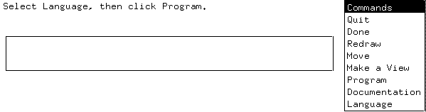 When you start the Graphical Programming Server, it creates a window containing an input area and a command menu: