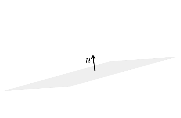 ¶Picture a mirror with its orientation defined by a unit length vector, \(u \text{,}\) that is orthogonal to it.