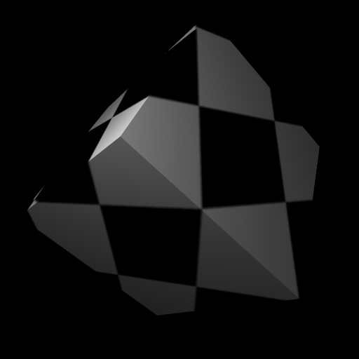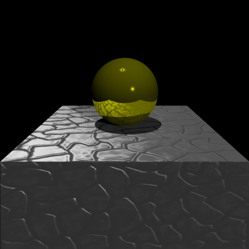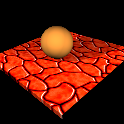 Simple scene using a 2D bump map on the surface of the cube. There is no actual texture on the cube, we used a stone texture as a bump map, to create the cobblestone effect.