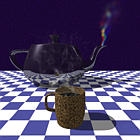 Photon mapping. Caustics (re-focusing of light through refractive objects) and complex volumetric scatter (multiple scattering events through participating media like thick smoke and clouds) are important visual effects that cannot be modeled without tracing some rays from the light, as well as from the viewer. One method for modeling of these effects is to trace light rays and deposit photons on surfaces and in clouds -- a technique called "photon mapping." Implement photon mapping to demonstrate one or both of these effects. Henrik Wann Jensen's web page has a variety of links to examples and papers about this approach. ![]()