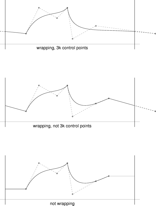 Note that in the "not wrapping" case, the horizontal segment on the right is part of the curve you should output, even though it looks gray (poor conversion from postscript to GIF).