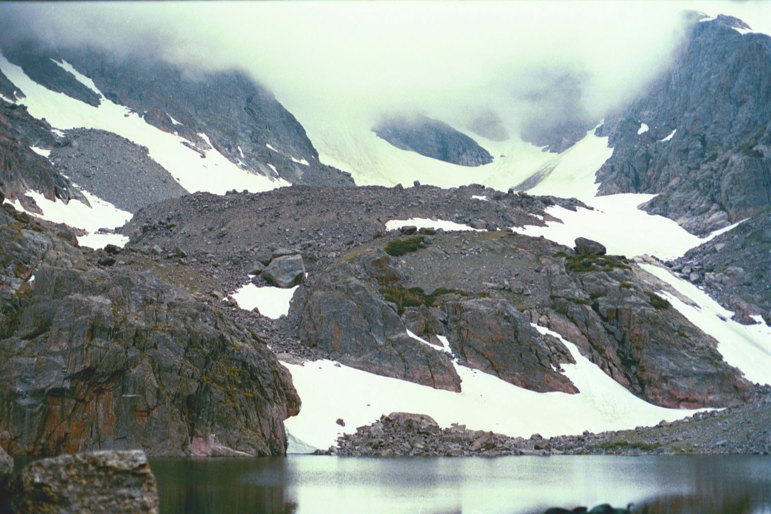 Sky Pond is seen looking SW.