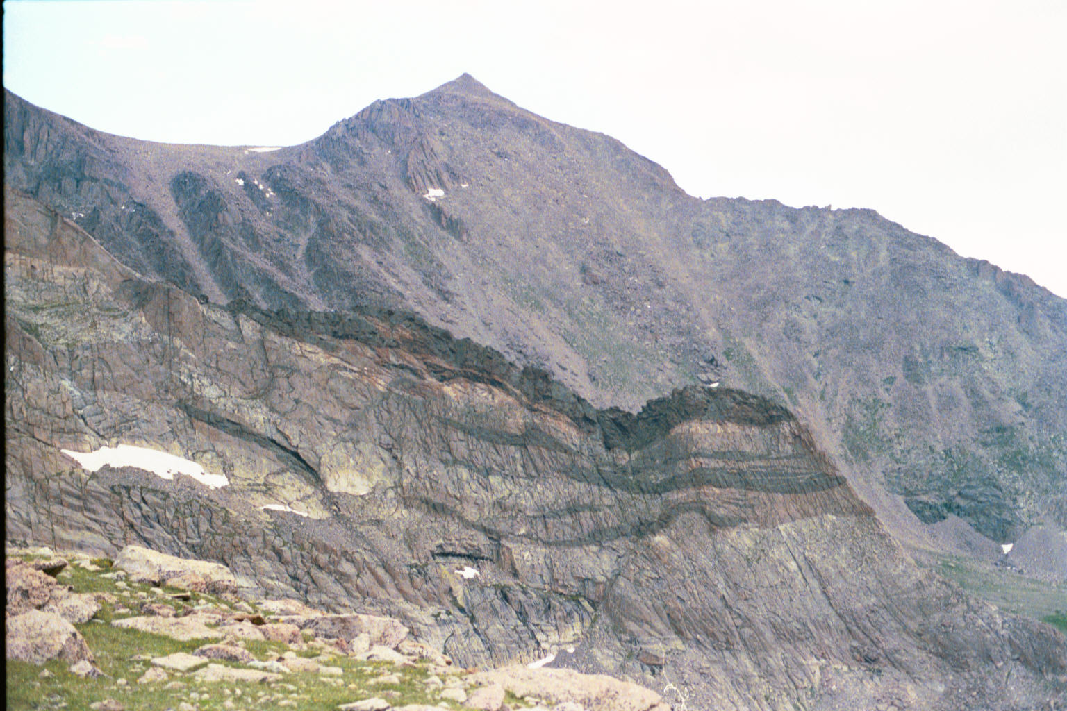 Mt. Meeker seen looking E from the slopes of Chiefs Head, with the Loft between Meeker and Longs at the left.