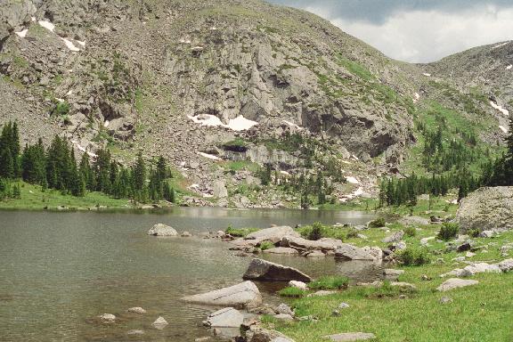 Timber Lake is seen looking SE toward Mt. Ida.