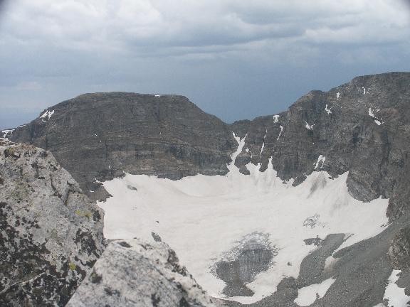 One of the St. Vrain Glaciers is seen looking SW from Elk Tooth.