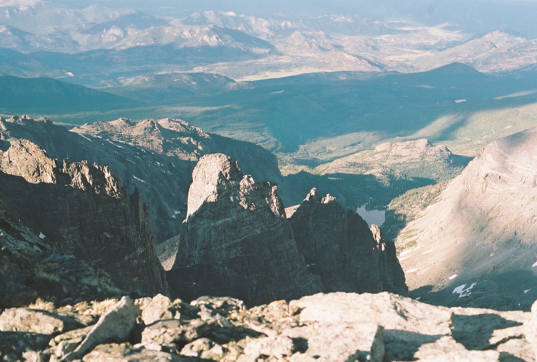 The Sharkstooth is seen looking NE from Taylor Peak. The Loch is in the valley below.