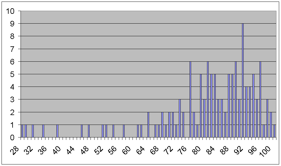 Histogram of raw scores. (Uncurved)