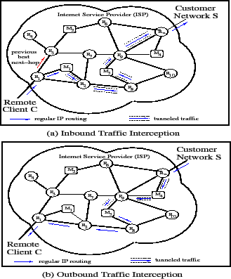In our prototype implementation, we use iBGP and tunneling to intercept